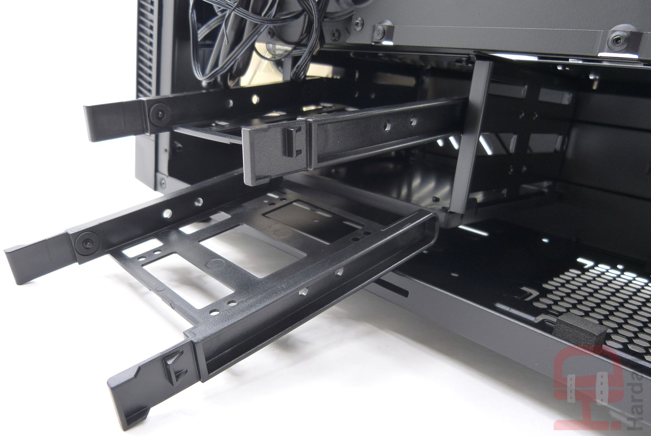 La semitorre Sharkoon TG5 Pro RGB es probablemente una de las mejores cajas que encontraréis por debajo de los 100€ con una calidad material más que aceptable, durabilidad y prestaciones decentes. No solo en esto es una gran candidata, sino también por intentar aumentar la capacidad de la caja para dispositivos de almacenamiento de datos. Muchas de estas cajas de otras marcas se conforman con 2 bandejas para 2.5″ y otras 2 bandejas para 3.5″, nada más. La TG5 Pro RGB va más allá y ofrece hasta 4 bandejas de 2.5″ y 2 bandejas para 3.5″ y un hueco adicional para otra unidad de 3.5″. Eso suma un total de 7 dispositivos. De hecho, esto debería ser lo mínimo para cualquier caja de tipo semitorre, pero no es así. Muchas cajas similares de otras marcas no ofrecen «tanto». Solo por este detalle la TG5 Pro RGB (o TG6 RGB) vale la pena.